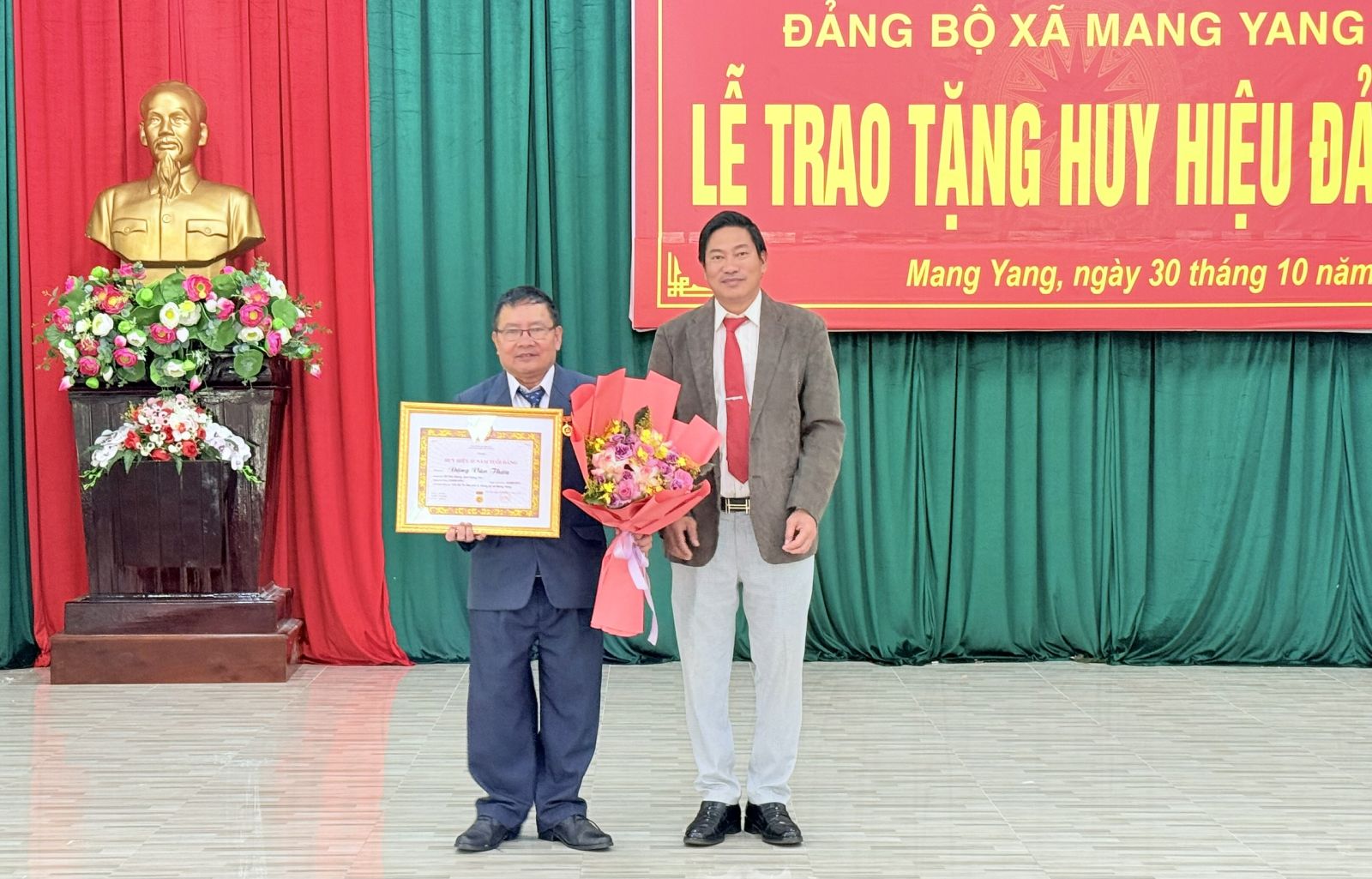 Lãnh đạo xã Mang Yang trao tặng Huy hiệu Đảng chi các đảng viên 50 năm và 45 tuổi Đảng
