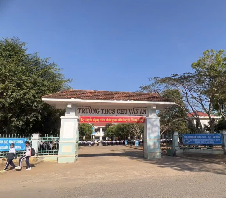 Cổng trường THCS Chu Văn An, xã Mang Yang